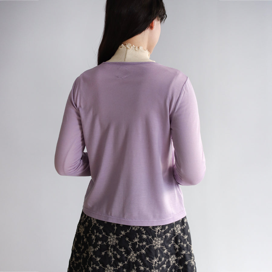 ドレープの効いた伸縮性の高い生地はとてもやわらかく、薄手なので季節の変わり目から長く活躍してくれること間違いなし。